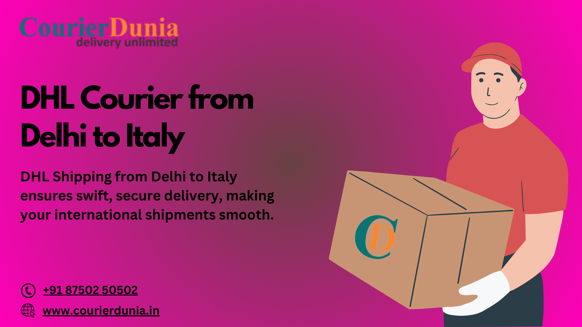 Shipping from Delhi to Italy with DHL is a reliable and efficient option for anyone looking to send packages internationally. With CourierDunia as your partner, you can access DHL’s world-class services with ease. Whether you need to send a small document or a large shipment, DHL’s expertise as an international courier in India ensures that your package arrives on time and in perfect condition. Trust CourierDunia and DHL for all your international shipping needs and experience a seamless process from start to finish.